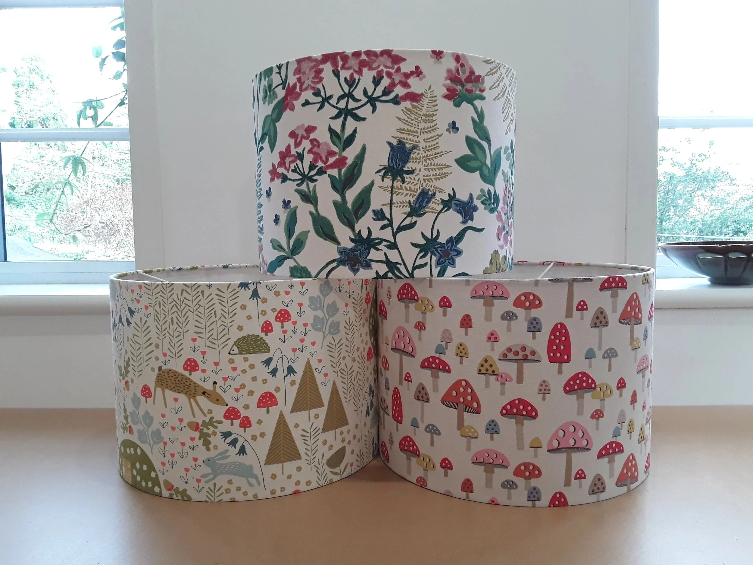 Beautiful lampshades, each one carefully handcrafted by artisan maker - Penny Fitzmaurice - using natural fabrics and nature inspired prints.